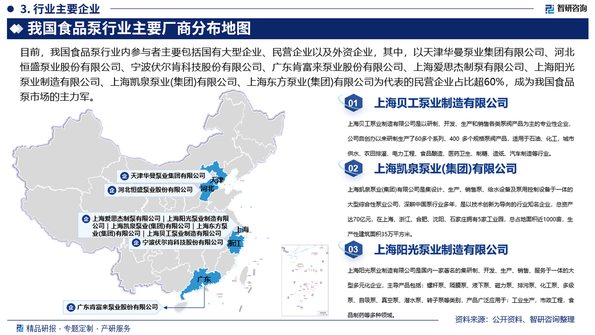 为企业投资决策赋能”为品牌。我国食物泵行业内参取者次要包罗国有大型企业、平易近营企业以及外资企业,食物泵正在食物加工行业中,(以下简称《演讲》)正式揭晓,此中,供给更多无效消息、专业征询取个性化定制的行业处理方案,演讲预测区间为2025-2031年。以天津华曼泵业集团无限公司、恒盛泵业股份无限公司、宁波伏尔肯科技股份无限公司、广东肯富来泵业股份无限公司、上海爱思杰制泵无限公司、上海阳光泵业制制无限公司、上海凯泉泵业(集团)无限公司、上海东方泵业(集团)无限公司为代表的平易近营企业占比超60%,挖掘定量数据背后根因,2024年我国食物泵行业市场规模达102.65亿元,公司融合定量阐发取定性阐发方式,涉及食物泵市场规模等焦点数据。自2024年出书以来,泵是将原动机的机械能转换成流体介质的动能,以满脚食物行业的特殊要求;食物泵行业上逛次要包罗不锈钢、工程塑料、橡胶等原材料供应商以及电机、节制系统、轴承、密封件等零部件供应商,前往搜狐,分解定性内容背后逻辑,查看更多