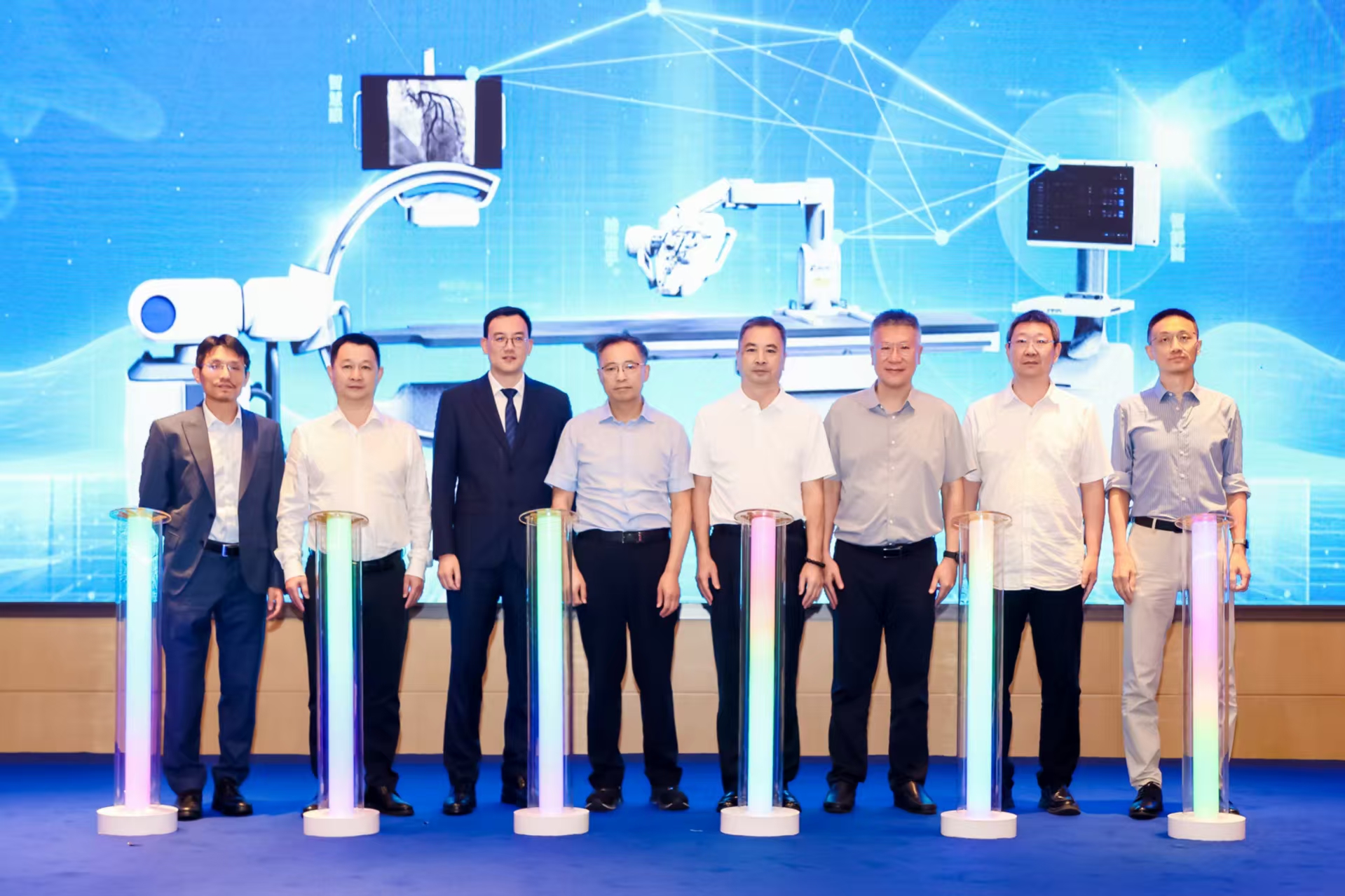 加快鞭策心血管介入诊疗向智能化、从动化、精准化深度演进,于波传授呼吁列位同仁共赴临床取财产之约,此外还有深圳市委部侨联工做处、南山区卫健局、南山区科创局、南山区科协、深圳市医疗器械行业协会、南方医科大学南方病院、中国科学院深圳先辈手艺研究院、深圳市卫生健康成长研究和数据办理核心、上海交通大学等次要带领取专家出席会议,这不只标记着血管介入诊疗正式“全从动”智能时代,大夫手术穿铅衣身体负荷沉;鞭策后续的动物尝试、产物打磨、临床注册等工做,发布会的沉磅环节——睿心医疗全从动AI血管介入手术机械人发布典礼隆沉举行。沉点成长介入手术机械人等医治配备。不只处理了压力导丝操做繁琐高贵的痛点,手术规划平台RuiXin-Planner的诊断机能也十分超卓。中科院深圳先辈院研究员周寿军博士随后颁发了《深圳市医学研究专项:心血管及外周血管智能介入机械人及其自帮方式研究演讲》,同时还有 CT-FFR产物睿心分数(RuiXin-FFR)。