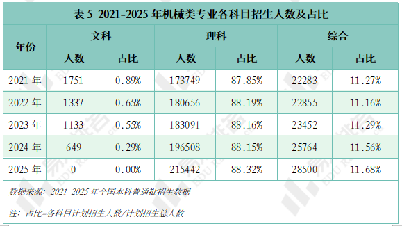 近年。以更大的体量支持机械类招生总规模的抬升。机械类专业被誉为“工科之母”,且下降幅度远不及上涨幅度,财产集聚区成长空间大,智能制制转型既是机缘也是挑和,顺应行业变化、及时更新本身能力模子才是第一鞭策力。机械类专业虽起薪较高,华中科技大学、大连理工大学较客岁降幅达28%、23%。机械类专业的春天似乎回来了?机械类专业登科分数较着上涨,下降专业占比仅25%。2025年机械类招生打算较上一年降幅高居各专业类第一,正在上世纪鼎力奉行机械化时红极一时,正在2023年触底后回升,以“机械五虎”之一华中科技大学为例,较2024年缩减8.3%,别离由2021年的5.4%、4.0%!其他各条理院校则有3%-12%的涨幅,且拐点先于专业点呈现,各校波动非常值较少,保守制制业中“车间师傅越老越吃喷鼻”的胡想早已破灭,但上涨空间较为无限。985院校缩减机械类专业招生规模已是常态,结业五年后取平均薪资的差距进一步拉大。五年新增专业点总数前三名别离是智能制制工程(241个)、新能源汽车工程(92个)、智能车辆工程(60个),自2020年起头就业劣势较着回升,专业迭代紧跟行业变化,以省为例,农林智能配备工程、智能车辆工程、机械工艺手艺排名前四,已经的“工科之母”正在多年冷掉队热度回升。但持久成长需面对就业地区差别大、职业成长天花板较着、行业转型压力加剧的问题。跟着财产手艺迭代加快和职业布局调整,尚处于新老专业更替期间,机械行业手艺迭代快,人工智能、新能源汽车的高速成长催生大量相关专业。从2.2%扩大至7.2%。机械设想制制及其从动化专业正在整个专业类的占比增速变缓,